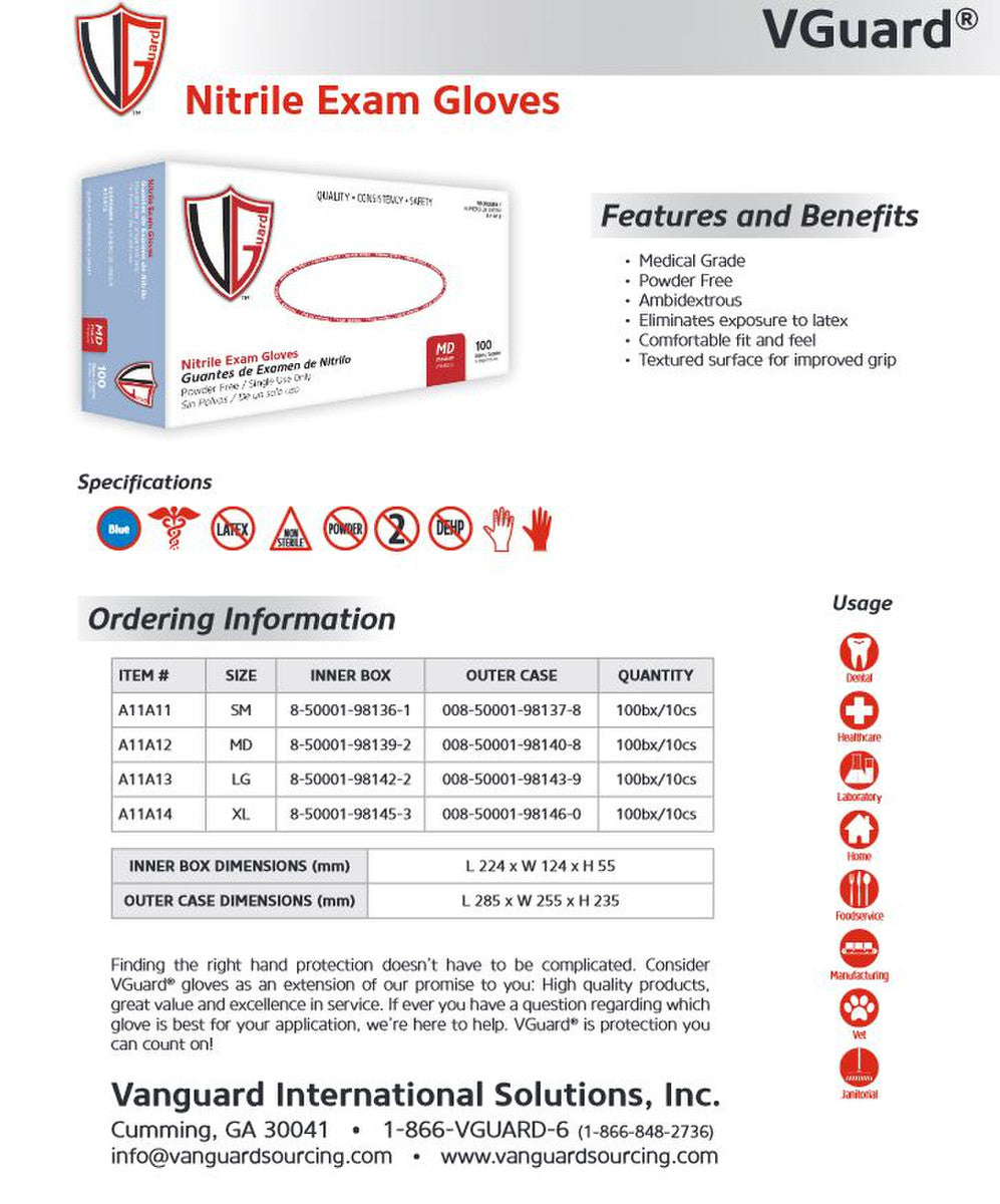 Nitrile Gloves, 3.5 Mil, Blue, Powder-Free, {Exam Approved} 100 / box, 10 boxes /case
